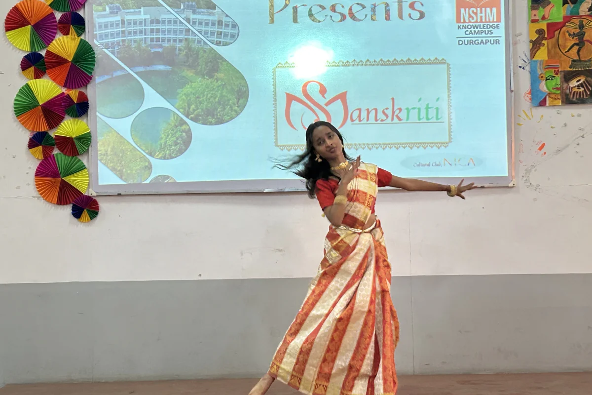 Sanskriti, the cultural club of NSHM Durgapur, organized a vibrant cultural programme celebrating music, dance, and artistic expression. Students showcased performances reflecting India’s rich cultural heritage and contemporary art forms. The event encouraged creativity, inclusivity, and cultural appreciation across the campus.