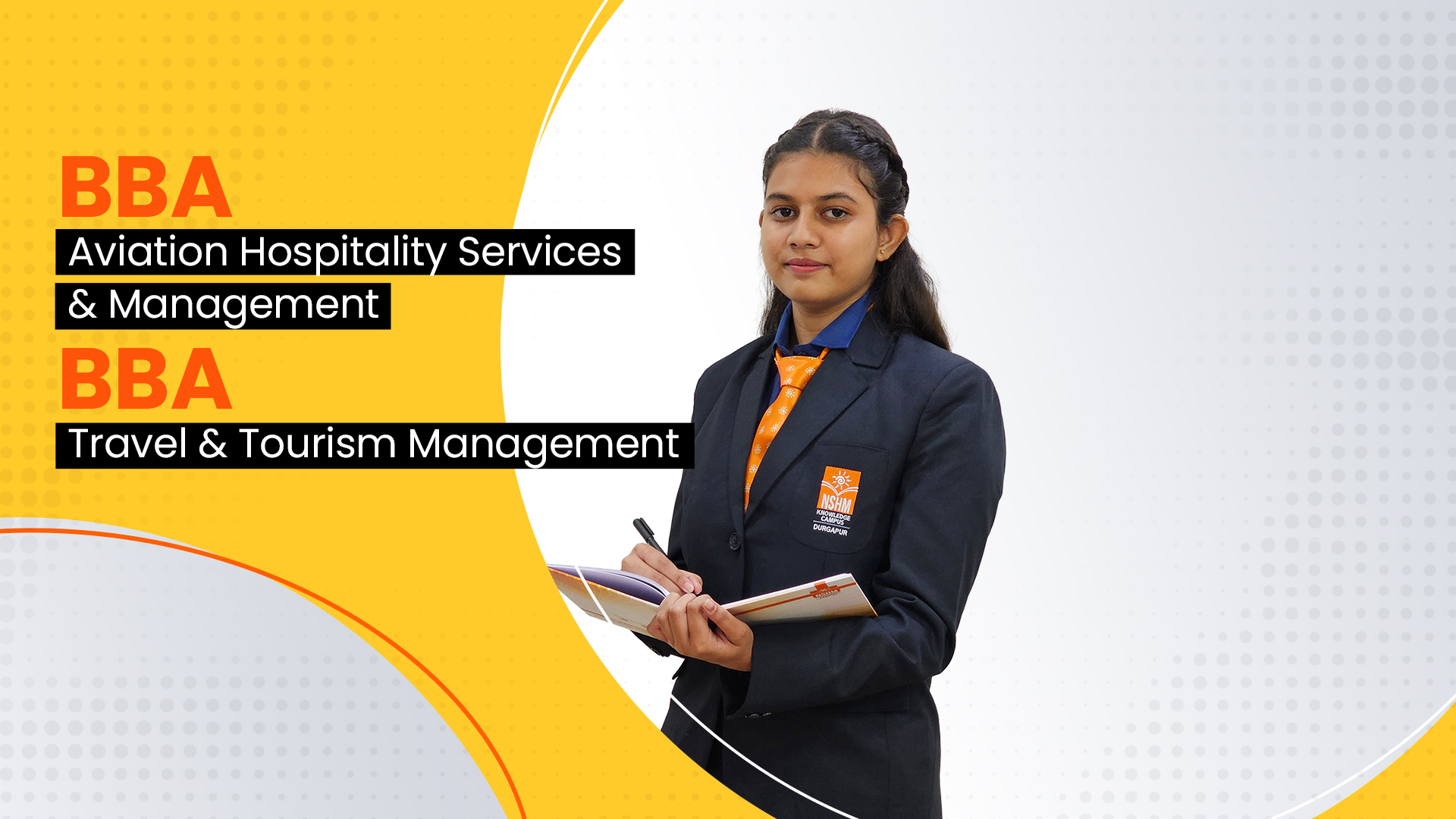 The BBA in Aviation, Hospitality Services & Management at NSHM Knowledge Campus, Durgapur is a 3-year full-time undergraduate programme designed to prepare students for dynamic careers in aviation, hospitality, travel, and service industries. The curriculum blends core business fundamentals with specialised training in airline operations, airport management, customer service, hotel administration, and event planning.