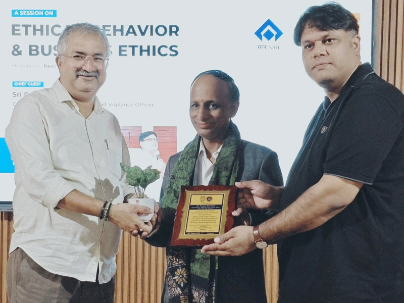The NSHM Science Club Udaan, in association with SAIL, organized a seminar on ‘Ethical Behaviour and Business Ethics’ on 28th August 2025, featuring Sri Pradeep Bharathan as Chief Guest and Sri Kantam Niranjan Kumar as Keynote Speaker. Students enjoyed an engaging Open House Quiz and gained valuable insights from interactive lectures by DSP Vigilance Officers. The event concluded with a thought-provoking skit, ‘Sach Ka Chunav’, performed by our beloved students, earning enthusiastic applause from all attendees.