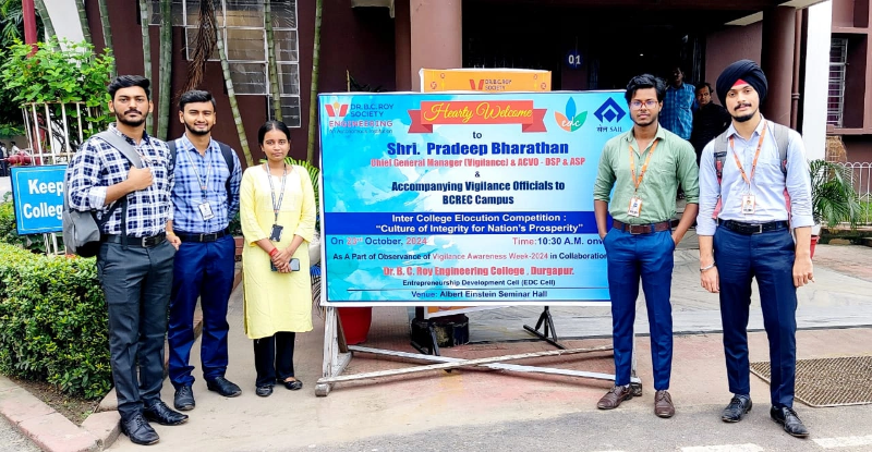 Our students, guided by the NSHM Science Club UDAAN, participated in the Inter-College Elocution Competition held on 23.10.24 as part of Vigilance Awareness Week. Organized by Durgapur Steel Plant, SAIL, the event was centered on the theme ‘Culture of Integrity for Nation’s Prosperity’. In this competition, our student Atmadeep Dutta secured the 1st position, while Rajveer Singh and Shiksha Rathor were also honored for their outstanding performances in different categories.